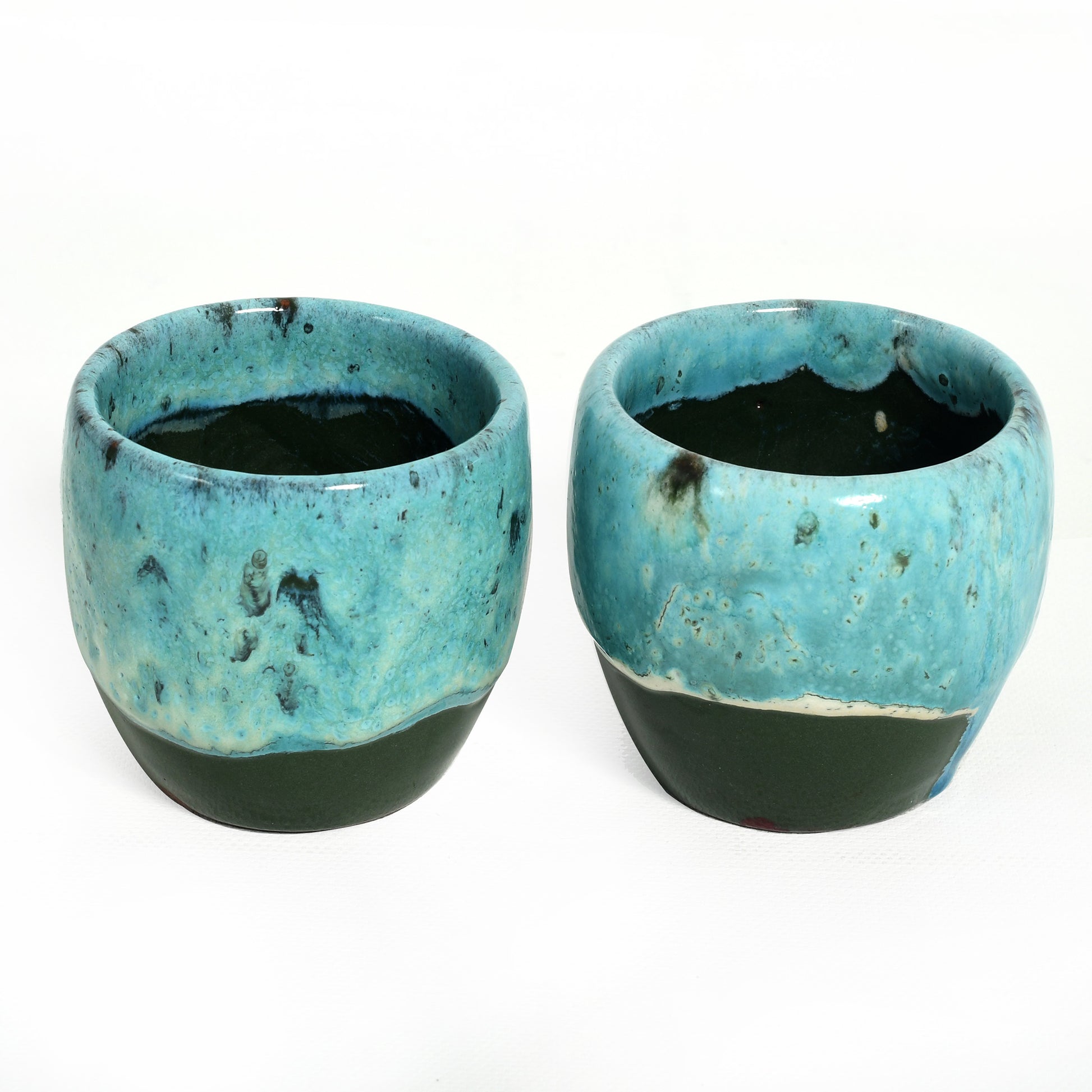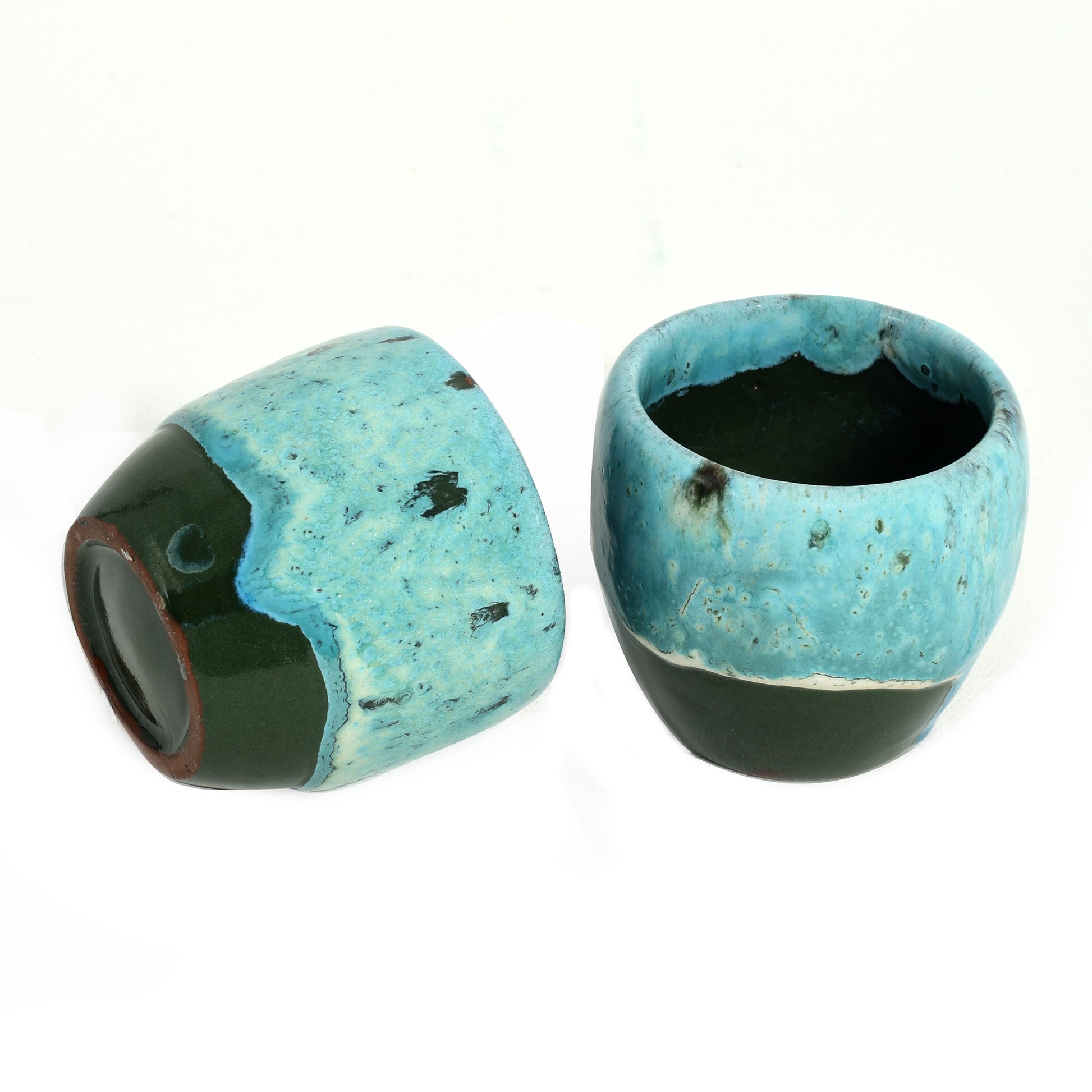 طقم من فنجانين قهوة مصنوعين من الطين الترابي الطبيعي