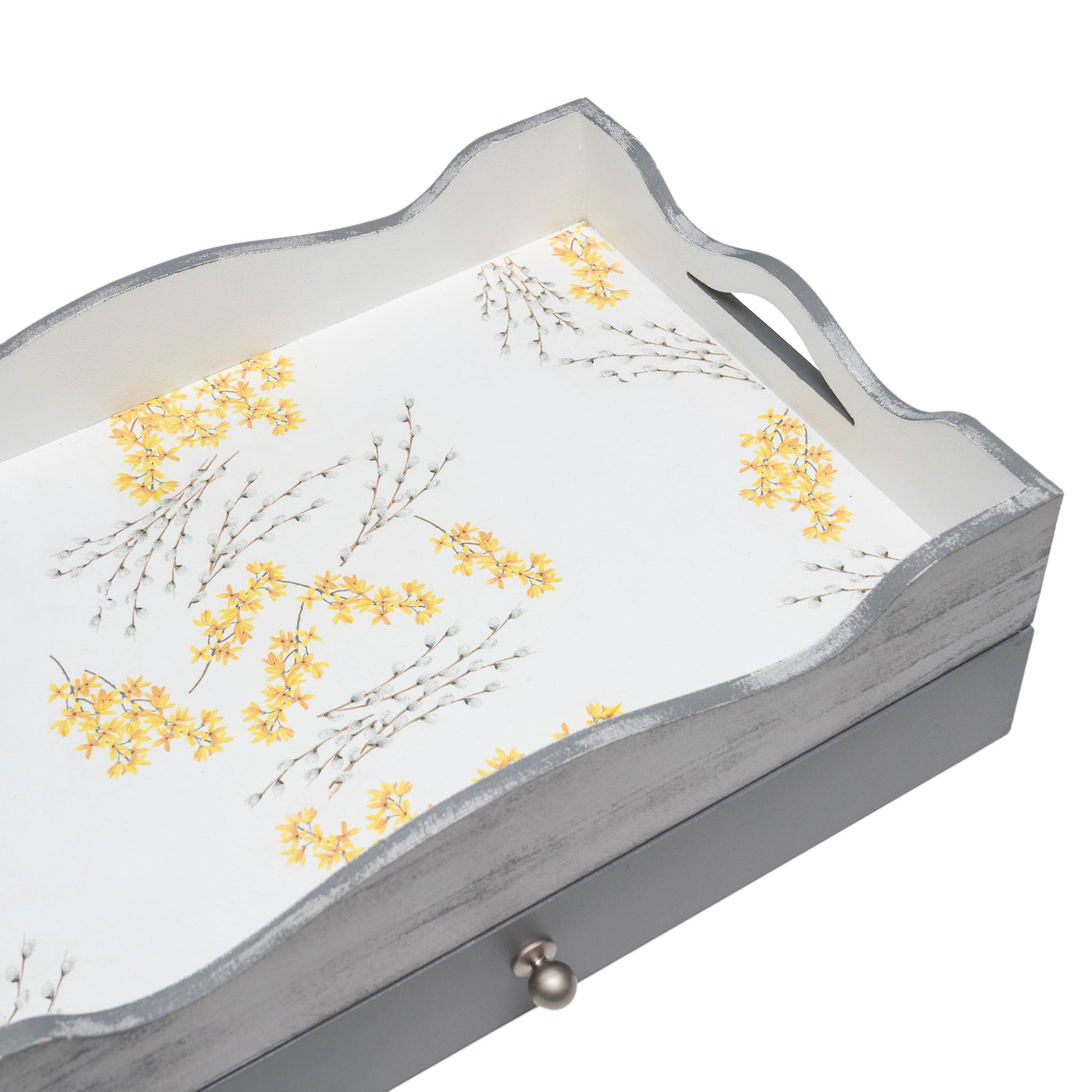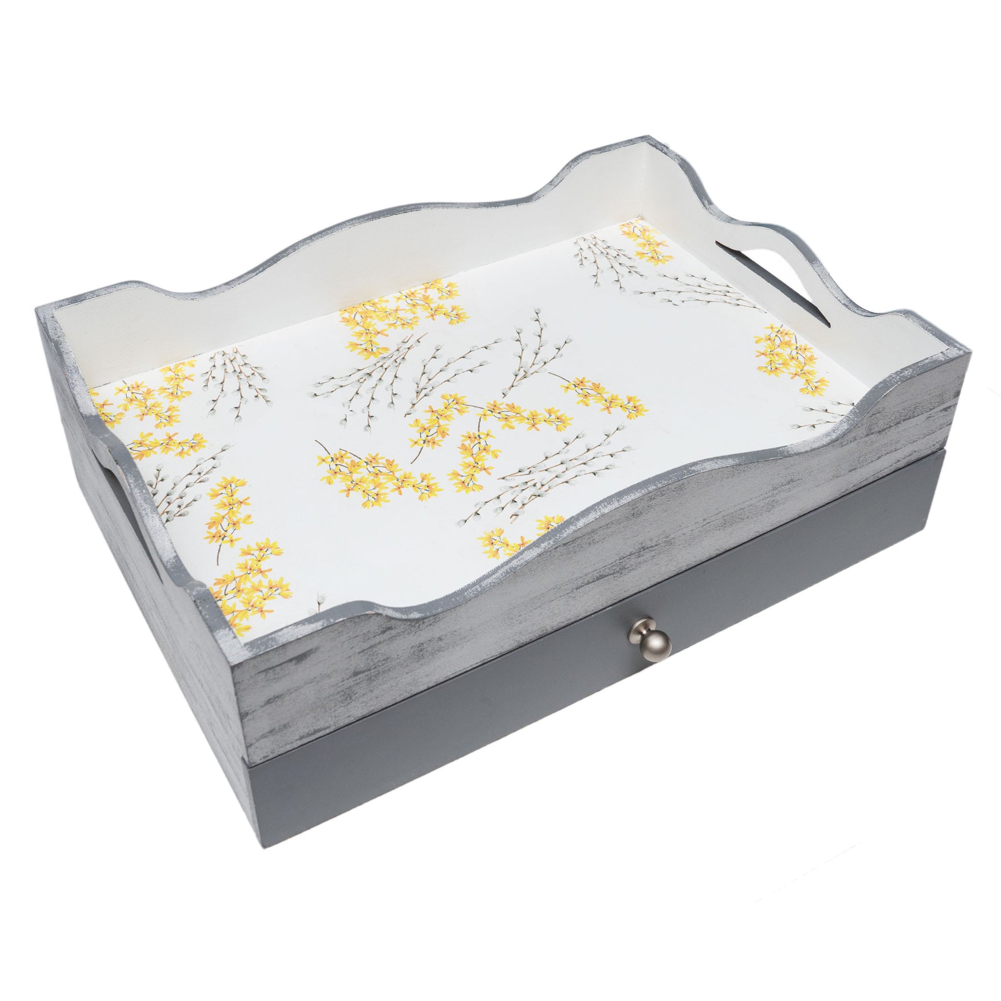 صينية من الخشب بدرج تخزين مصممة بتقنية الديكوباج الفريدة