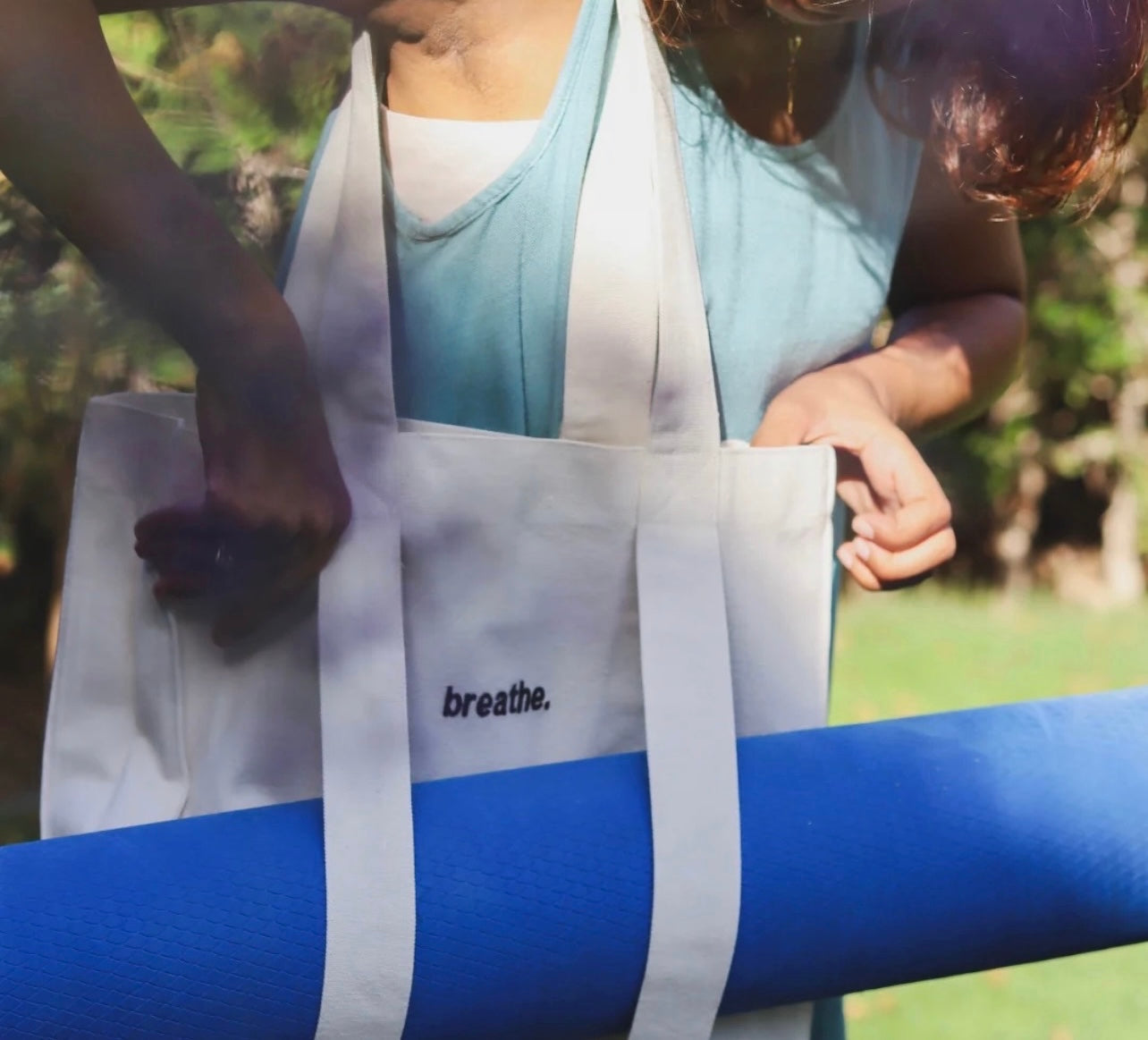 This yoga mat tote bag is crafted from premium-quality fabric, combining durability with a soft, natural feel. Designed to securely carry your yoga mat while leaving space for your essentials, it’s lightweight, practical, and effortlessly stylish — perfect for studio sessions, outdoor flows, and mindful moments